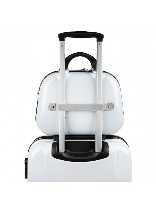 Das Gepäckset, bestehend aus einem Handgepäckkoffer und einem dekorierten Kulturbeutel aus starrem Polycarbonat, ist eine ausgezeichnete Option für Vielreisende, die ein langlebiges, praktisches Gepäck mit attraktivem Design suchen. Dieses aus starrem Polycarbonat gefertigte Gepäckset bietet eine hohe Beständigkeit gegen Stöße und Kratzer und ist somit ideal für den Verschleiß beim Transport auf Flughäfen und auf der Straße.