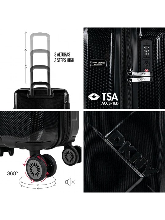 Das DKNY Hard Travel Luggage Set, DKNY-4506 YOUR CALL Kollektion, bietet Qualität und Funktionalität in jedem Teil. Dieses Reisegepäckset mit robusten Materialien garantiert Komfort und Haltbarkeit. Enthält vielseitige Reisegepäck-Sets mit TSA-Schloss und 360°-Rollen. Das Travel Luggage Pack ist ideal für alle Arten von Reisenden. Die leichte Struktur des Reisegepäcksets und die DKNY-Qualität zeichnen sich auf dem Markt aus. Erhältlich auch als optionale Koffersets und Koffersets, die sich an jeden Bedarf anpassen. Ideal für alle, die Wert auf Leistung und Stil legen.