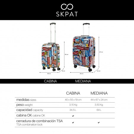 Set of SKPAT brand trolleys suitcases sizes 50/60/70 made of Polycarbonate, a light and resistant material.
