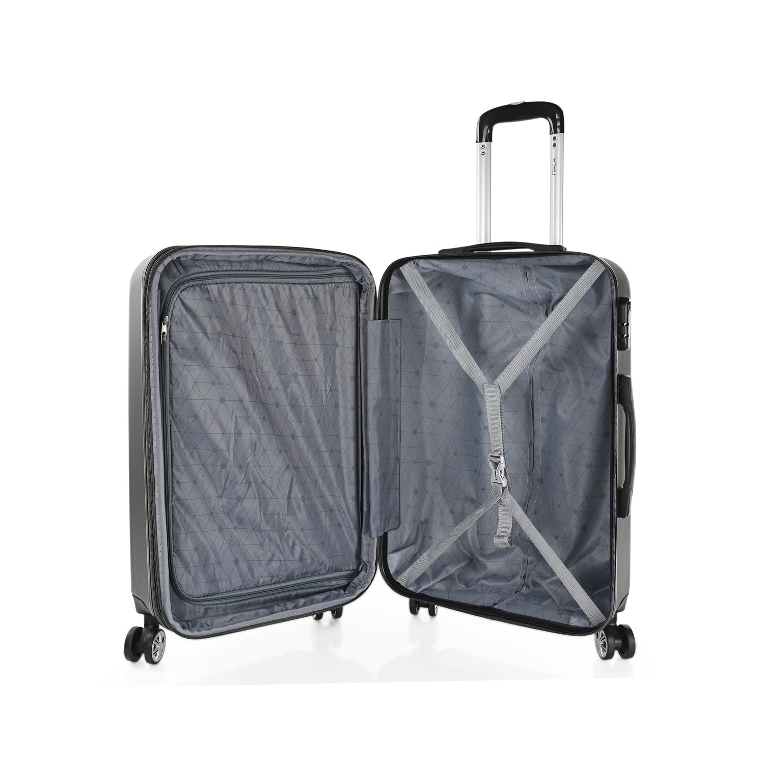 Since its inception, the ITACA brand has been at the forefront of design. Trolley suitcase size 60 made with ABS, a light and resistant material. It allows greater maneuverability with its 4 swivel wheels 360° multidirection with soft bearing and its telescopic trolley with insurance make its handling more comfortable. It has a zipper with double cursor and lock with LOCK combination for greater security. Inside, we contemplate the personalized lining of the brand, according to the exterior design, with central separation. It contains inner elastic straps that allow the contents to be fastened. The suitcases of 60 have an added bonus to be expandable and increase the size of the suitcase by 5 cm.