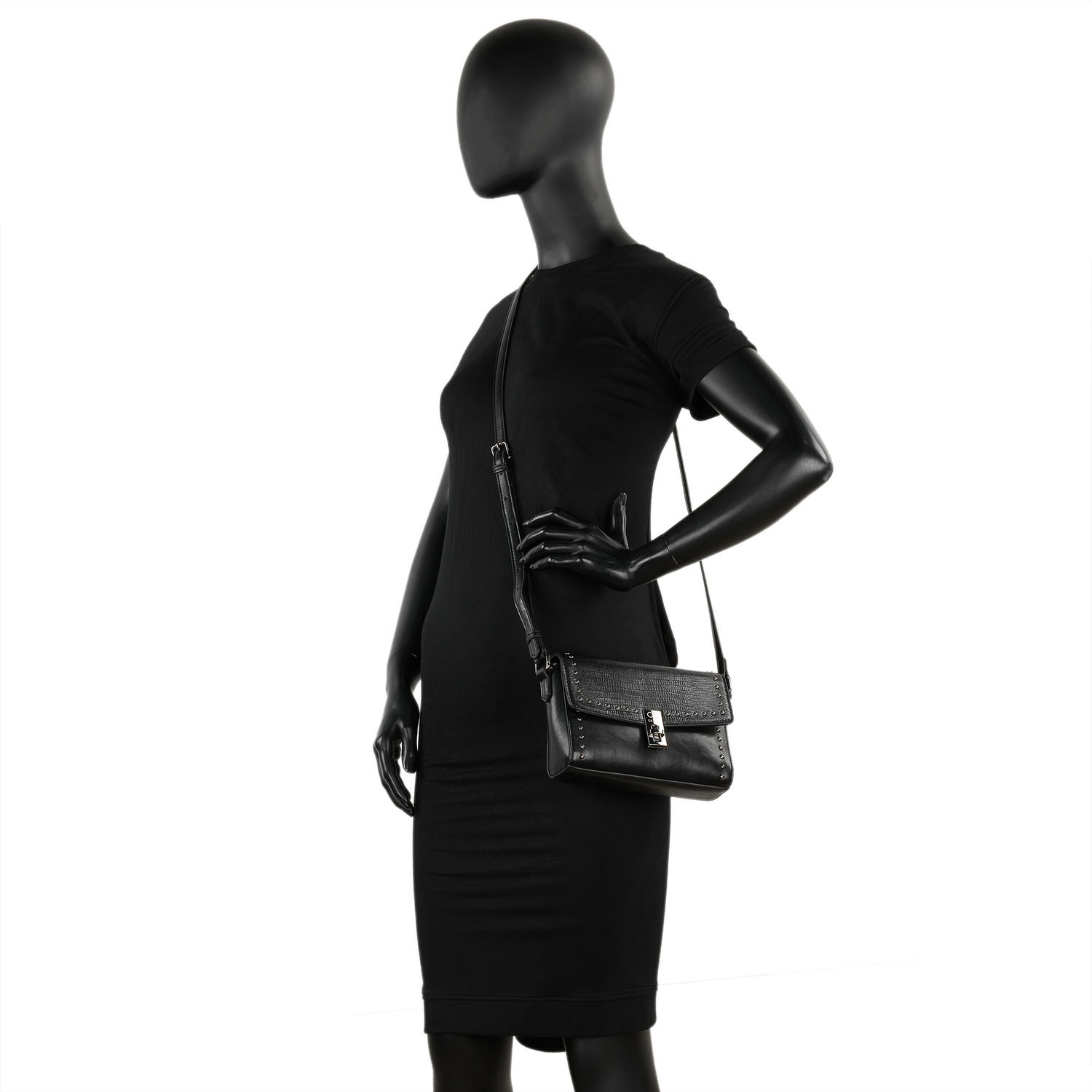 Características principales:Esta colección se caracteriza por el material grabado, los remaches decorativos y el cierre metálico personalizado.
