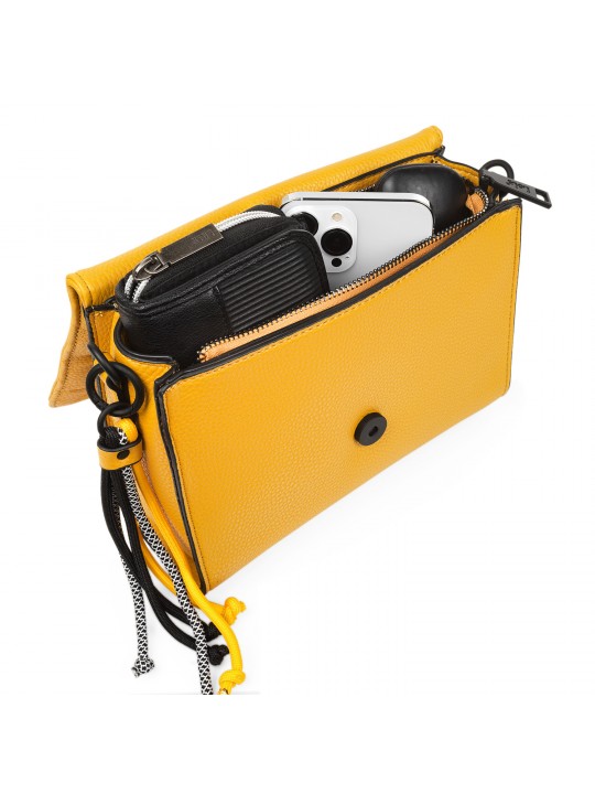 Exterior: Piel sintética, la cual cumple con los standars ECOFRIENDLY. Interior: Forro liso y etiqueta interior representativa de la marca. A destacar la textura del material, el bordado, los metales negro mate, el llavero y el logo metálico al tono.