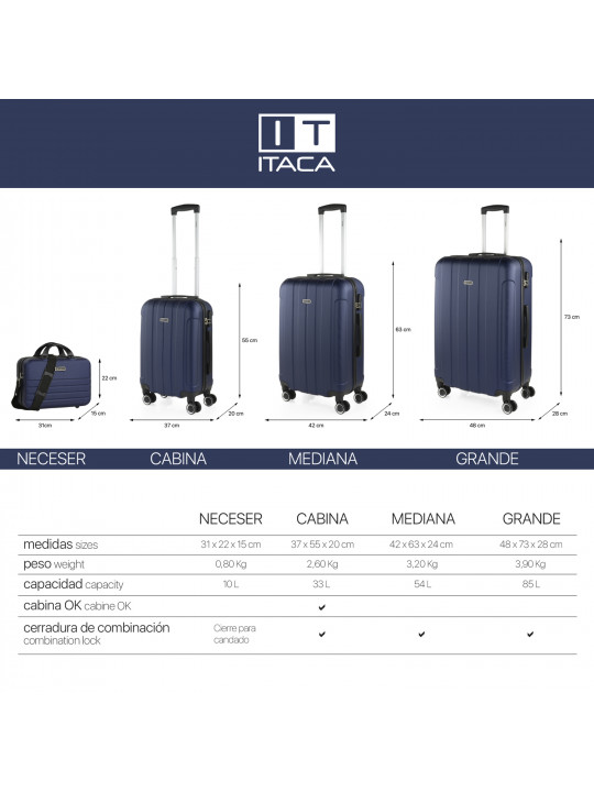 [Lot De 3 Valises (Cabine, Moyenne Et Grande)] Havel Rigide Avec Capacité L