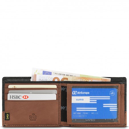 Portefeuille avec 2 compartiments pour les billets de banque. Il dispose d un portefeuille intérieur avec fermeture à glissière et capacité de 8 cartes.