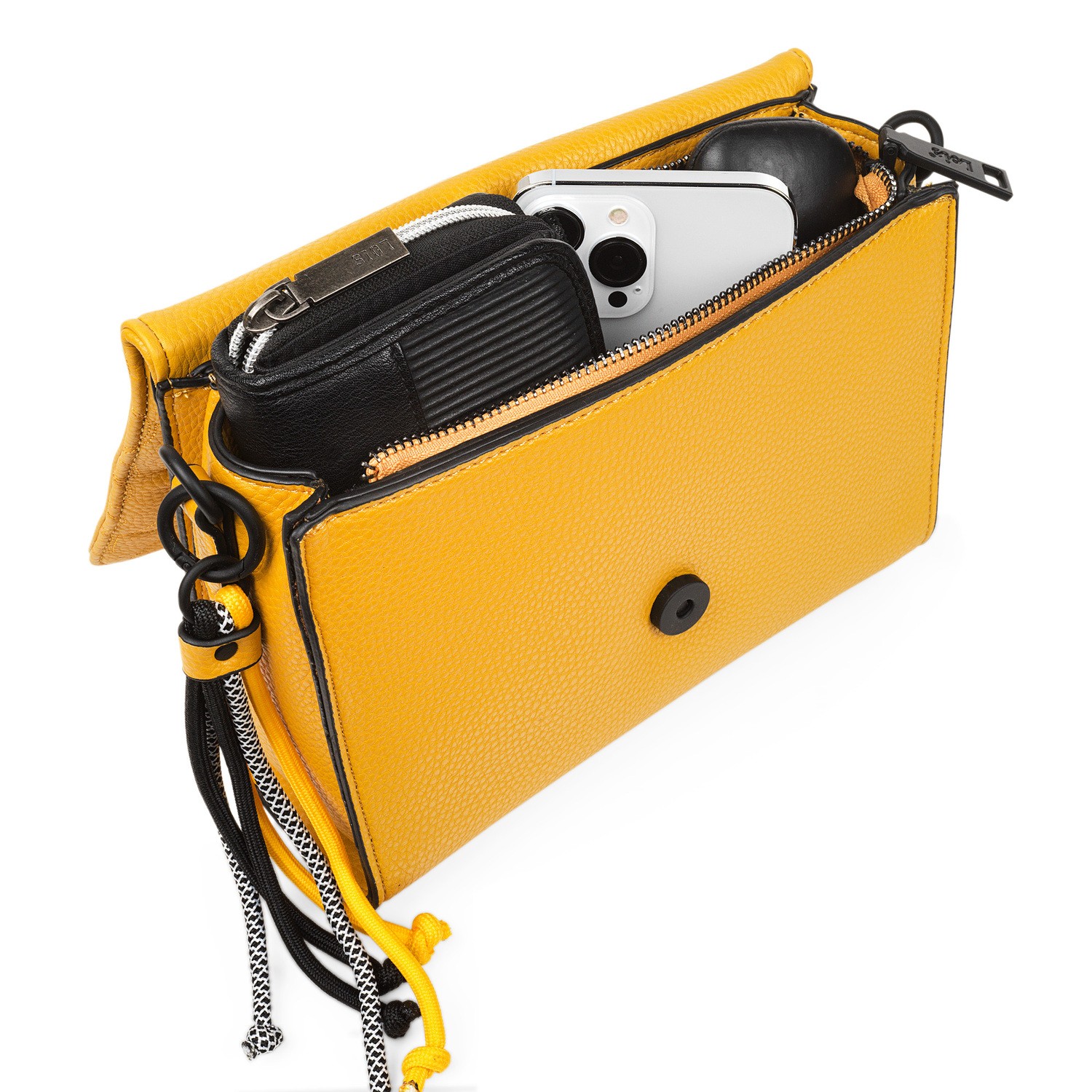 Borsa a tracolla con 2 cinghie rimovibili. 1 tracolla lunga regolabile personalizzata e 1 tracolla più corta (in pelle sintetica). Tasche posteriori e interne con chiusura a zip. Tasche interne dellorganizzatore.