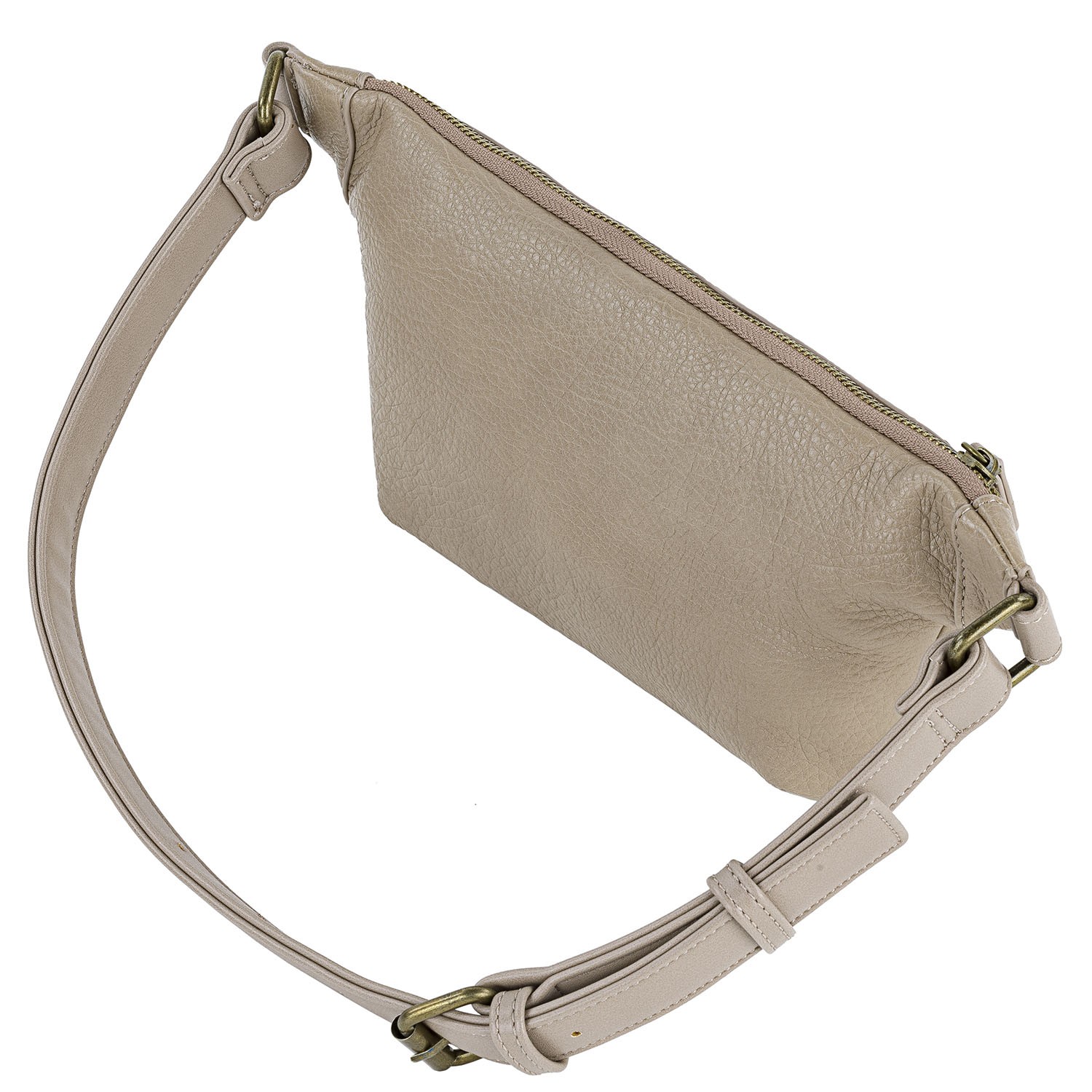 Chiusura cerniera. Cinturino regolabile. Tasca frontale con cerniera.