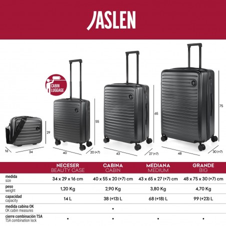Il marchio JASLEN presenta la collezione PADUA, una linea esclusiva di valigie da viaggio di alta qualità. Con un design elegante e moderno, queste valigie offrono durata e resistenza grazie al materiale ABS. La collezione PADUA presenta diverse dimensioni, tra cui valigie da cabina, medie e grandi, per soddisfare le vostre esigenze di viaggio. Dotate di ruote ad alte prestazioni e manico telescopico, le valigie ITACA ROMA garantiscono un esperienza di viaggio comoda e pratica. Non aspettate oltre e prendete il vostro set!