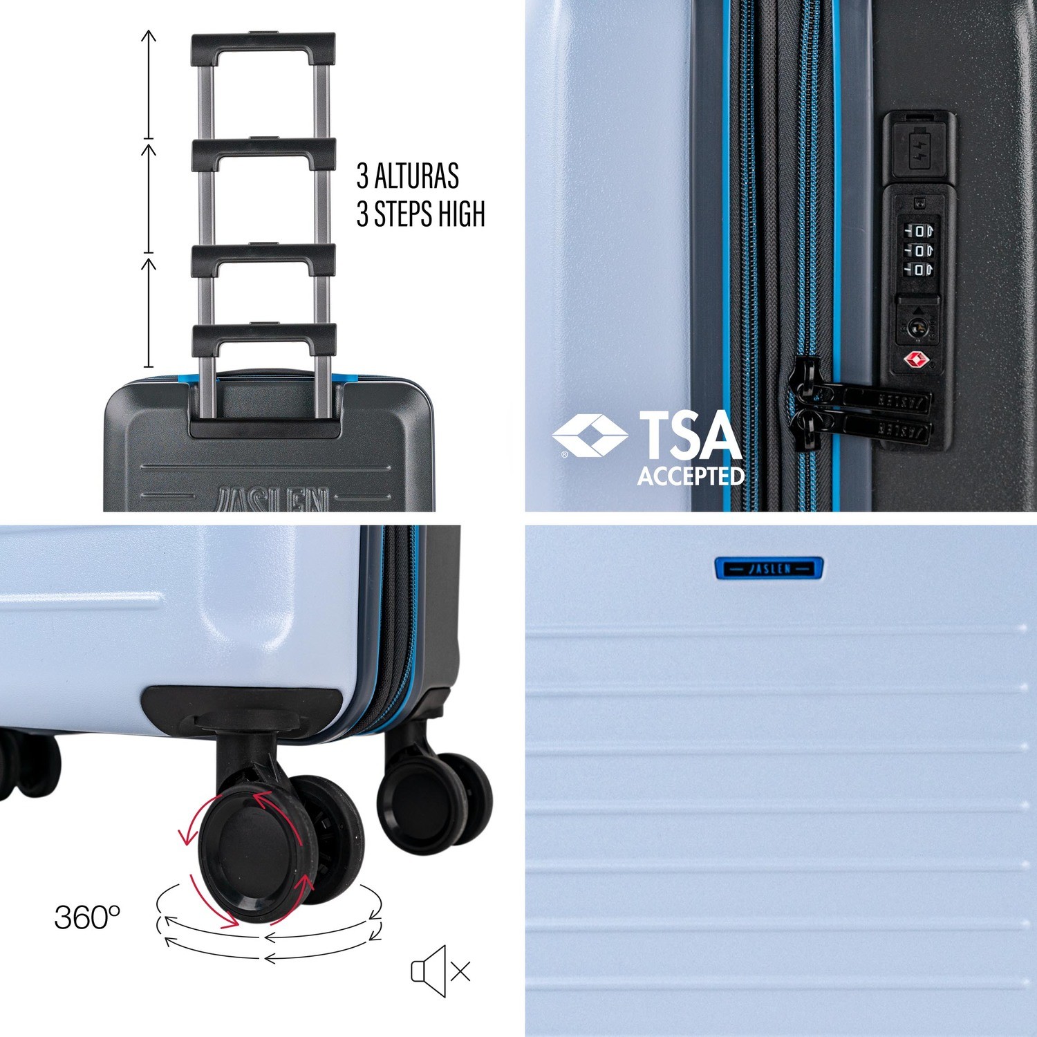 Scoprite la nuova collezione SALZBURG di JASLEN, specializzata in bagagli da viaggio per cabina 55X40X20. Progettata per soddisfare gli standard delle compagnie aeree, questa valigia a mano è resistente, leggera e funzionale. Con le dimensioni ideali di 55X35X25, il suo design in stile trolley e l eccellente finitura dei materiali garantiscono durata, mobilità e stile. Perfetta come bagaglio a mano, bagaglio a mano e valigia 55X40X20 per qualsiasi tipo di viaggio. La collezione si distingue per la selezione e la qualità dei materiali.