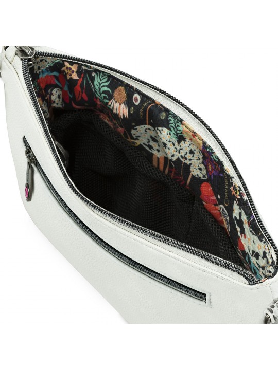 Principais características: Bolsa de ombro com alça ajustável. Tem um bolso interno e organizador. Bolso traseiro com fecho zip.