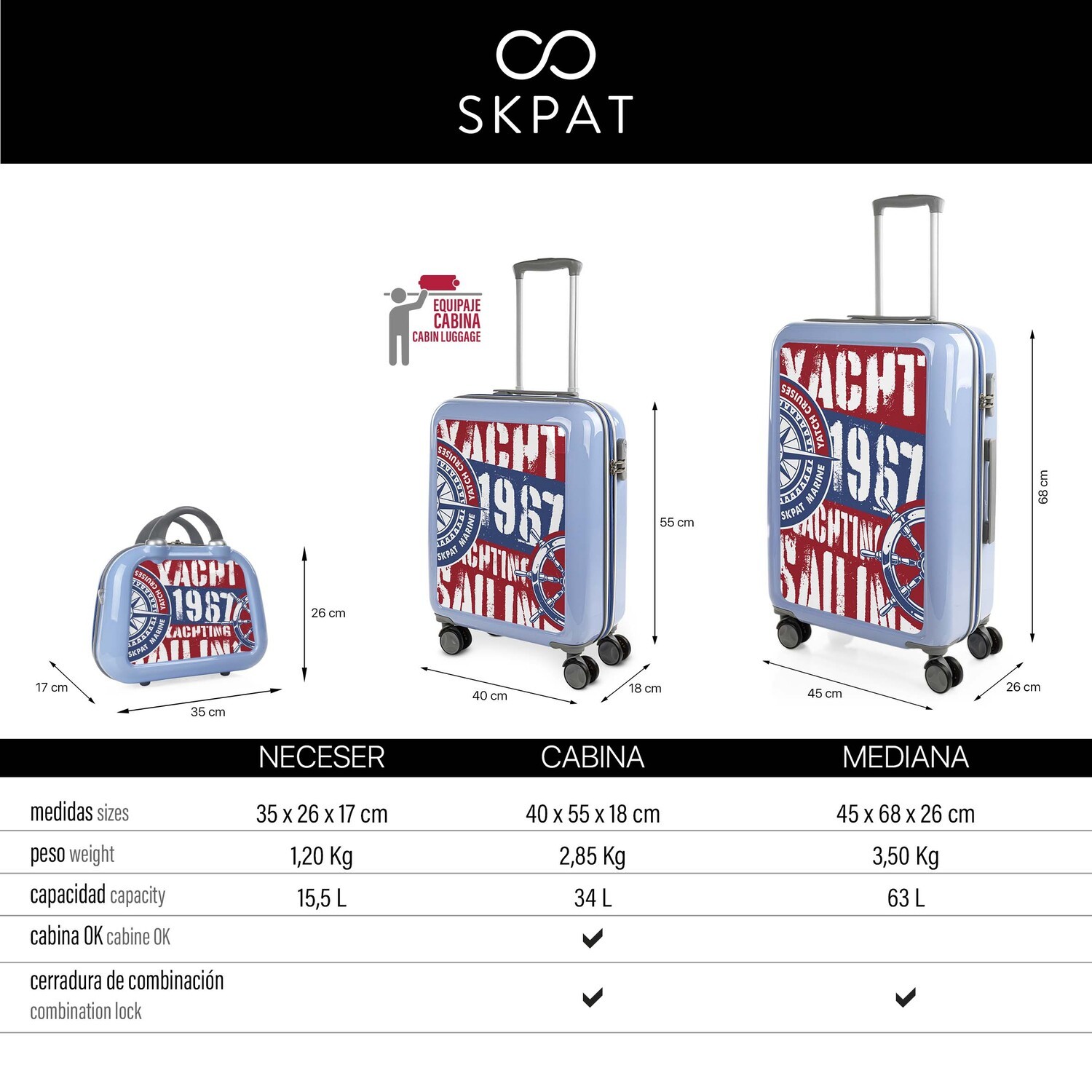 Mala 60Cm + saco de toilette Skpat Estampado
